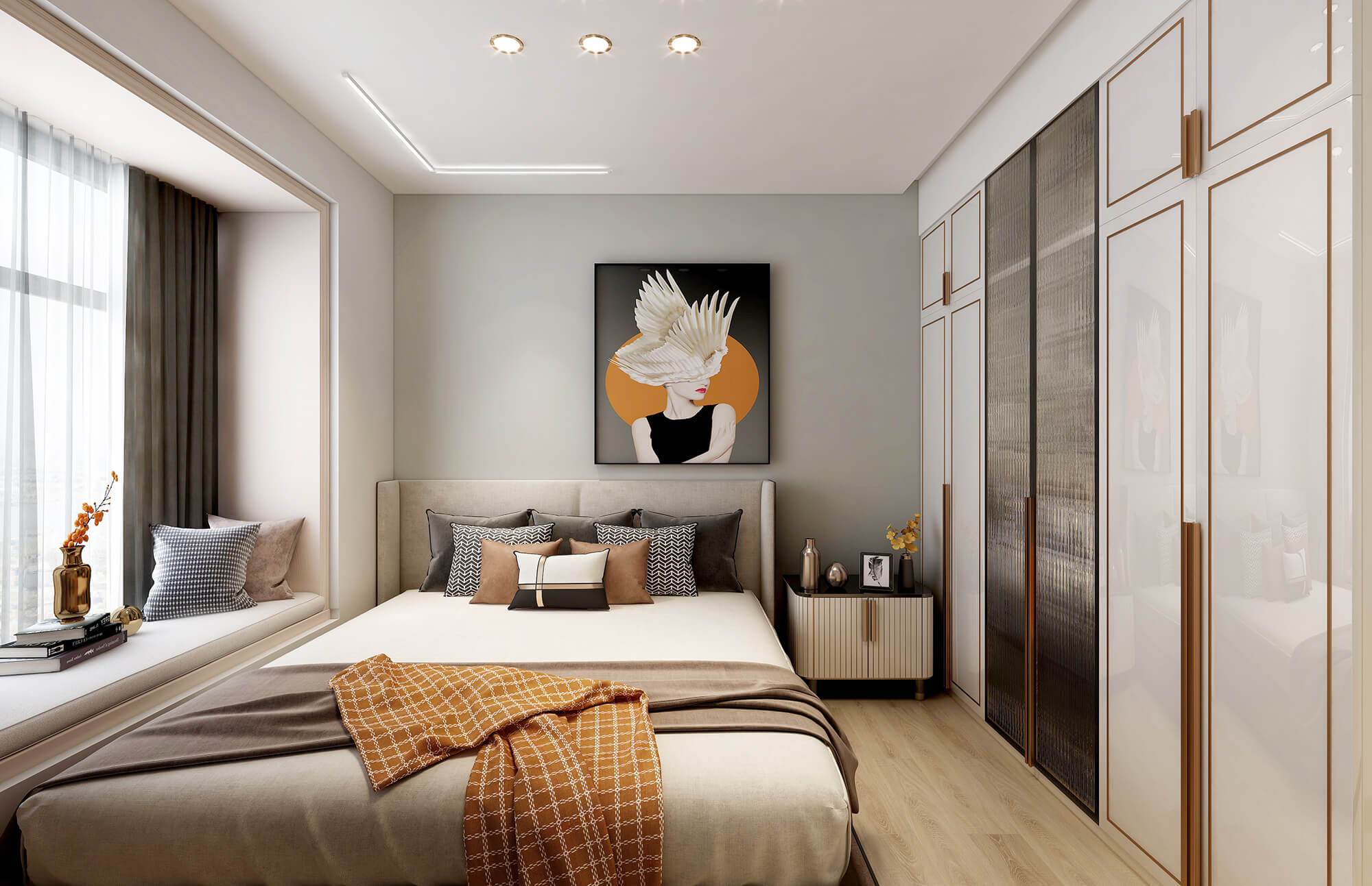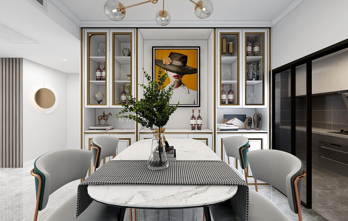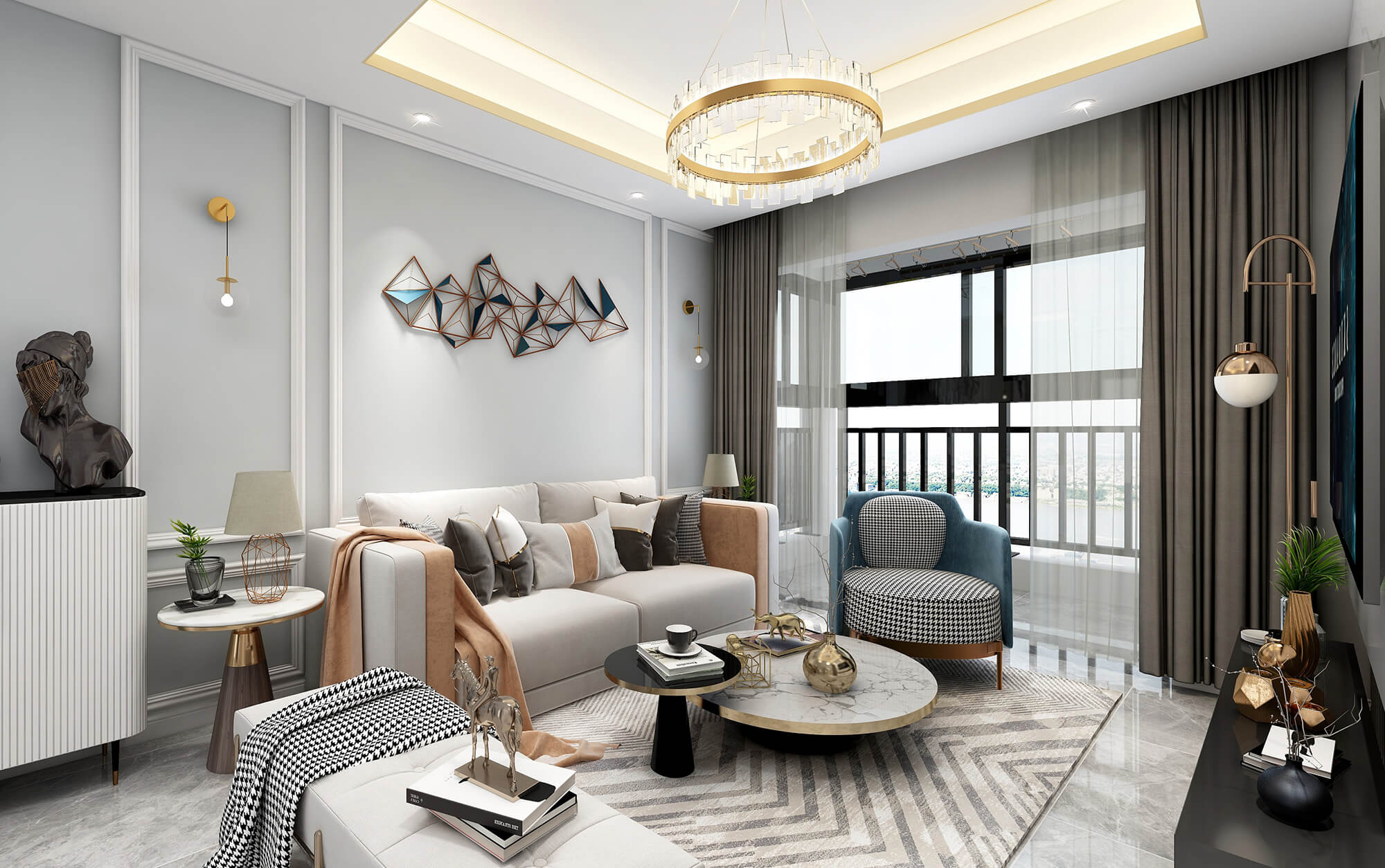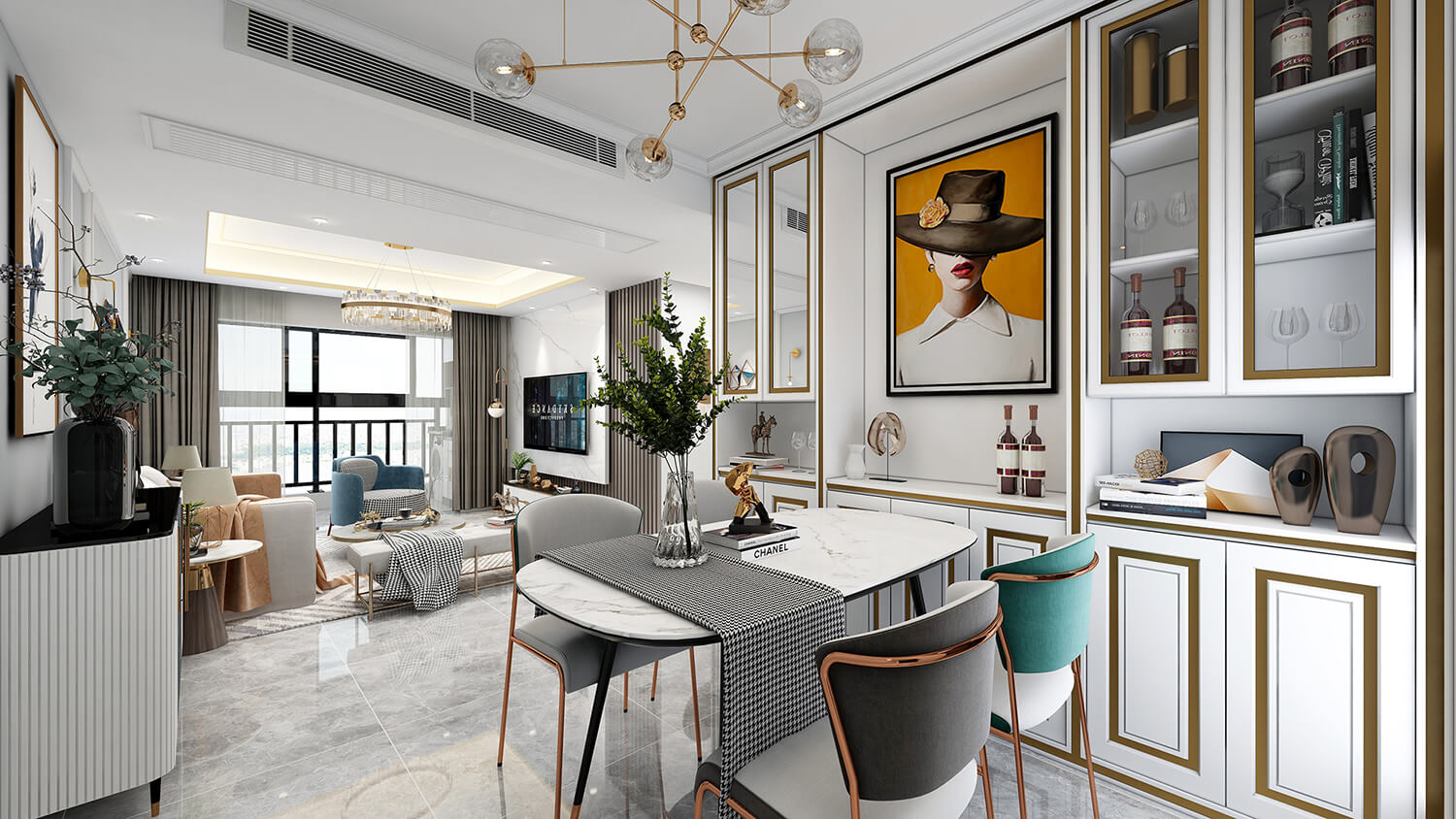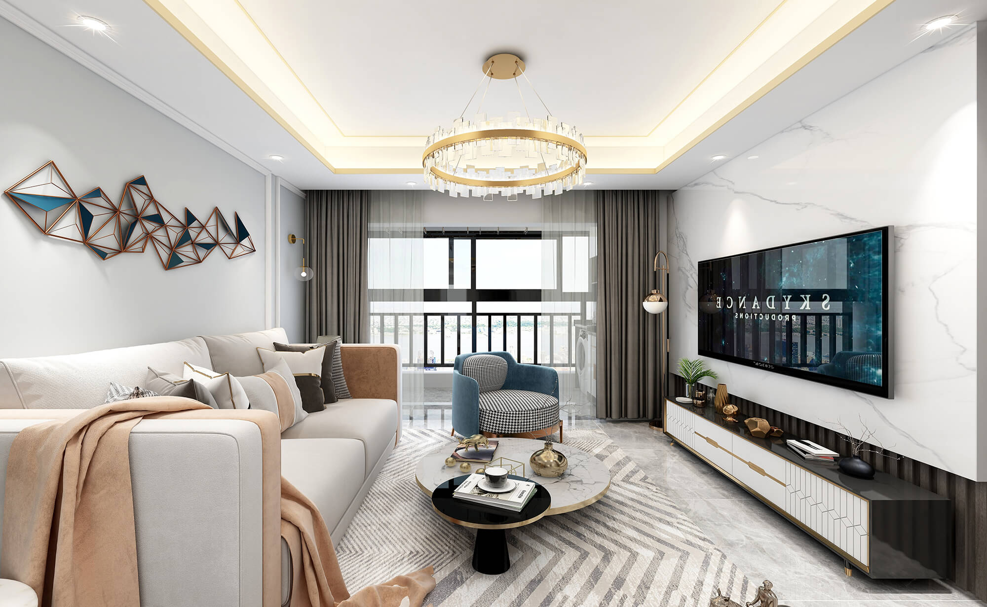 本案整體空間設計時尚大氣、舒適宜居。以淺灰為主色調,在空間與家具中巧妙的糅合了金屬元素,營造出時尚前衛的家居氛圍,適當的玻璃材質、亮色作為點綴,增添精致質感,形成了獨具特色的現代簡約輕奢風格。