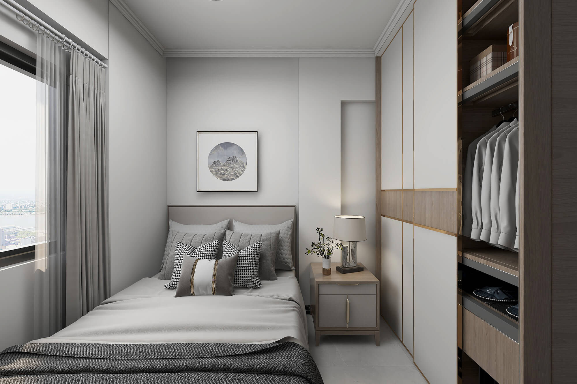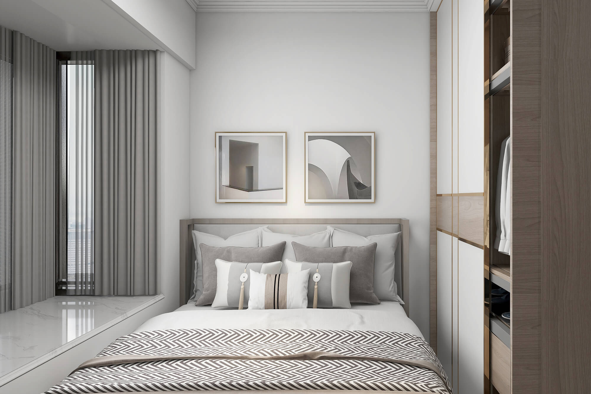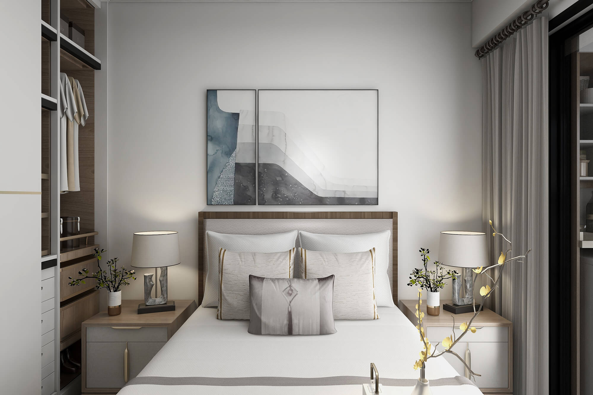 本案戶型為:3房2廳2衛,總面積72㎡。本案風格為新中式,在空間中以淺灰色為主色調,將中式元素以生活的面目表達出來。在造型、擺件等上面采用一些中式手法,為空間增添高雅秀逸的意境美,使得整體空間賞心悅目,并充滿韻味。