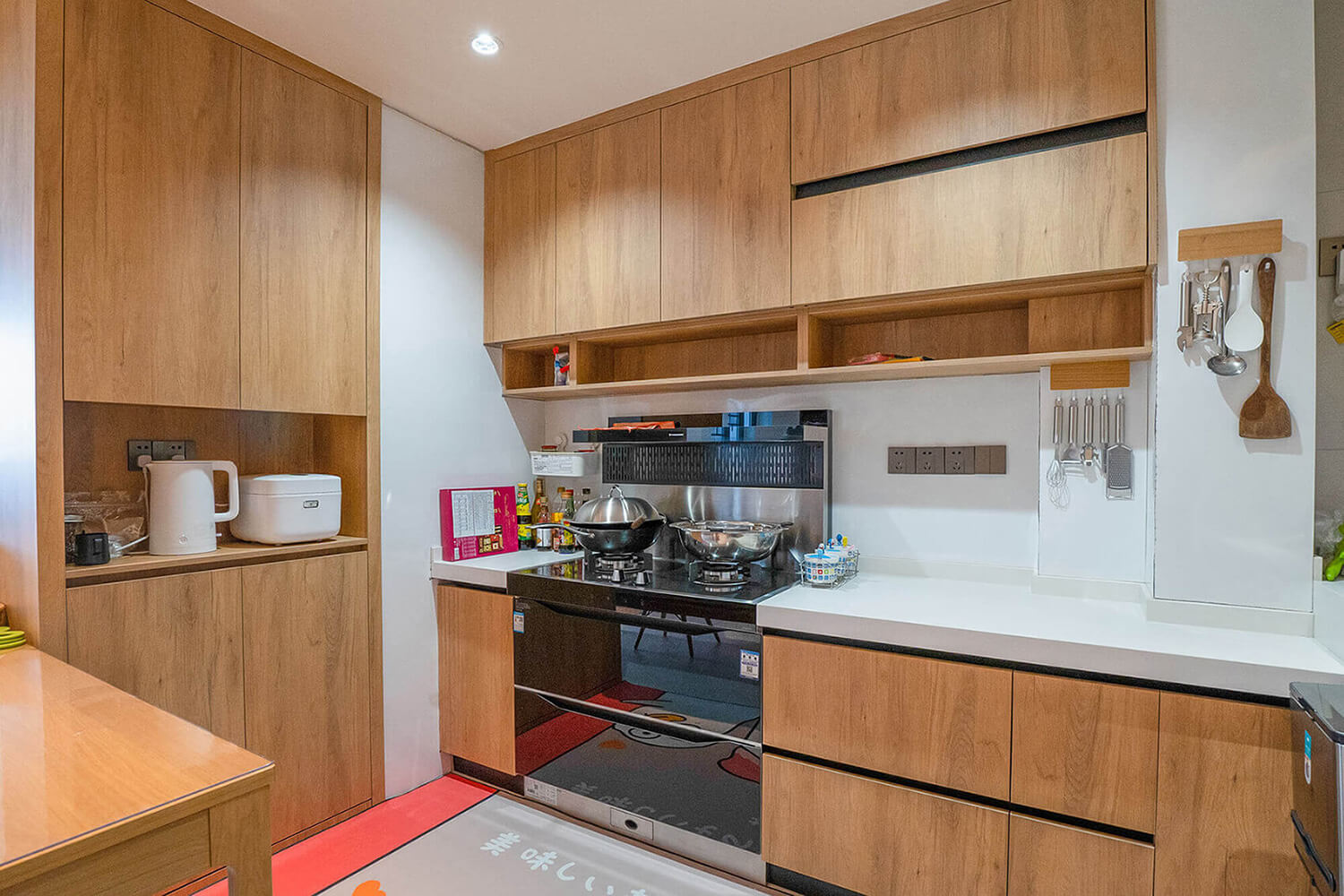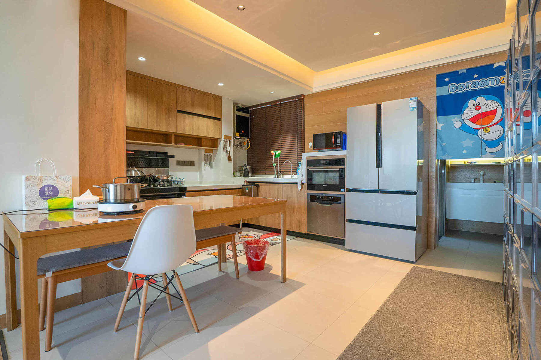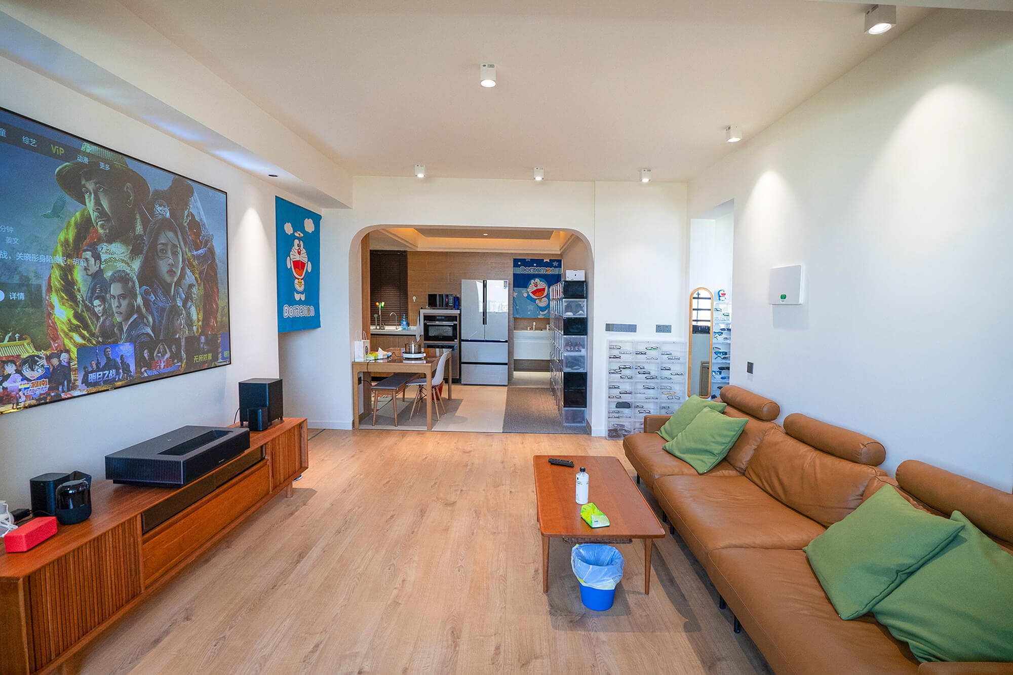 這套房子120平,整體是日式風,設計師根據業主的需求,全屋的布局和動線都貼合業主的生活習慣。以木色系為主,布置了很多燈光效果,打造出一個簡單而溫馨的家。貫通客廳與陽臺的主臥、開放式的餐廚、休閑餐吧等設計,都讓業主感到舒適輕松。