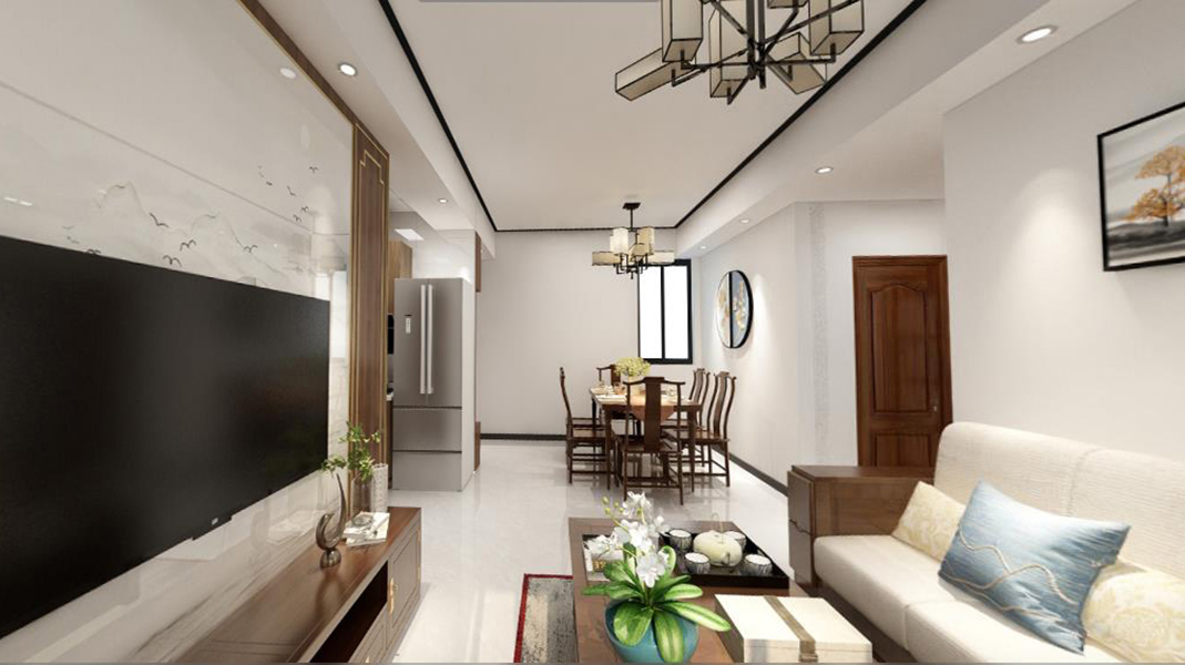 本案戶型為:3房2廳1衛,總面積88㎡。本案新中式風格更多的是有一種現代時尚的潮流感,不拘泥于任何一種形勢下所產生的想象空間。“天圓地方,天人合一”,新中式風格傳承傳統文化,打造新時代下的空間美學格局。