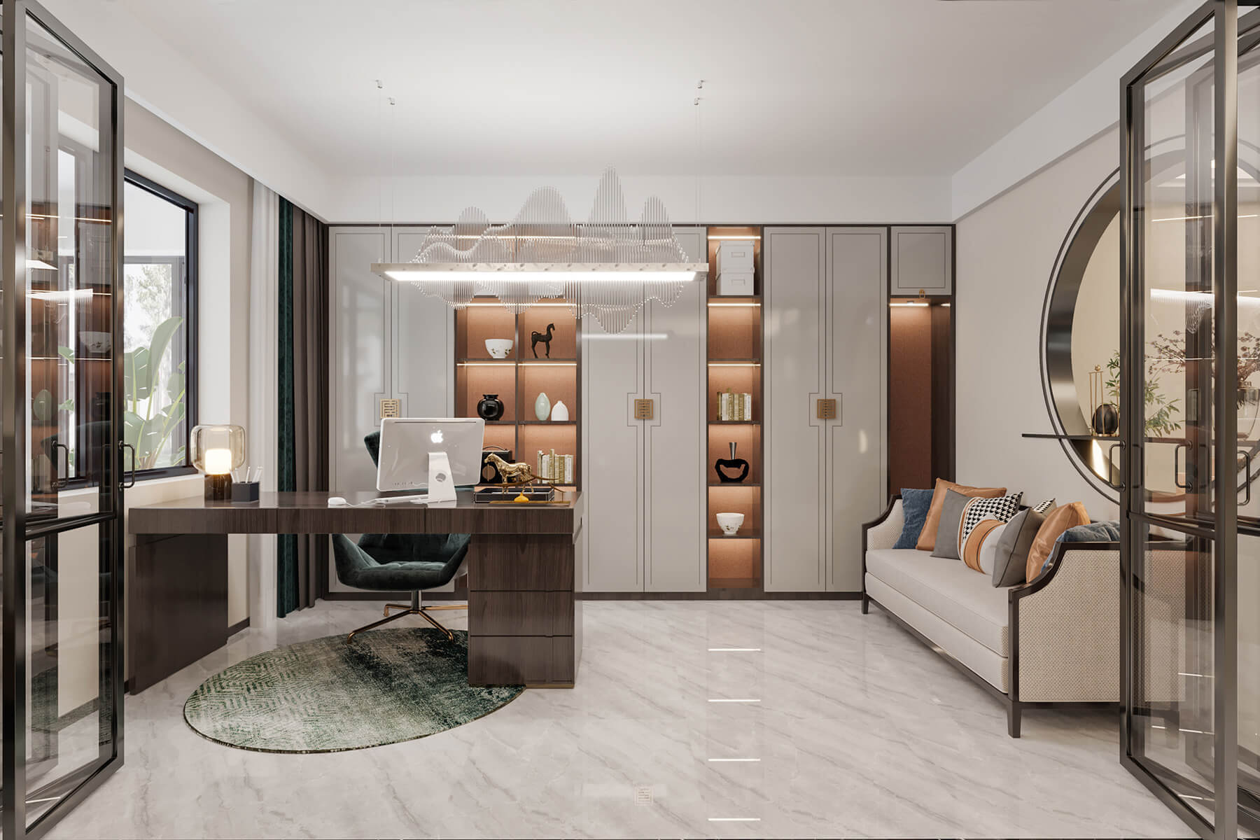 本案總面積136㎡,整體采用新中式風格設計。沿襲傳統江南風情,蘊藏著悠然詩意的傳統文化在空間中娓娓道來。東方的風韻與藝術的雅致,以簡練的手筆,營建清寧澄凈的氣質與芳華。
