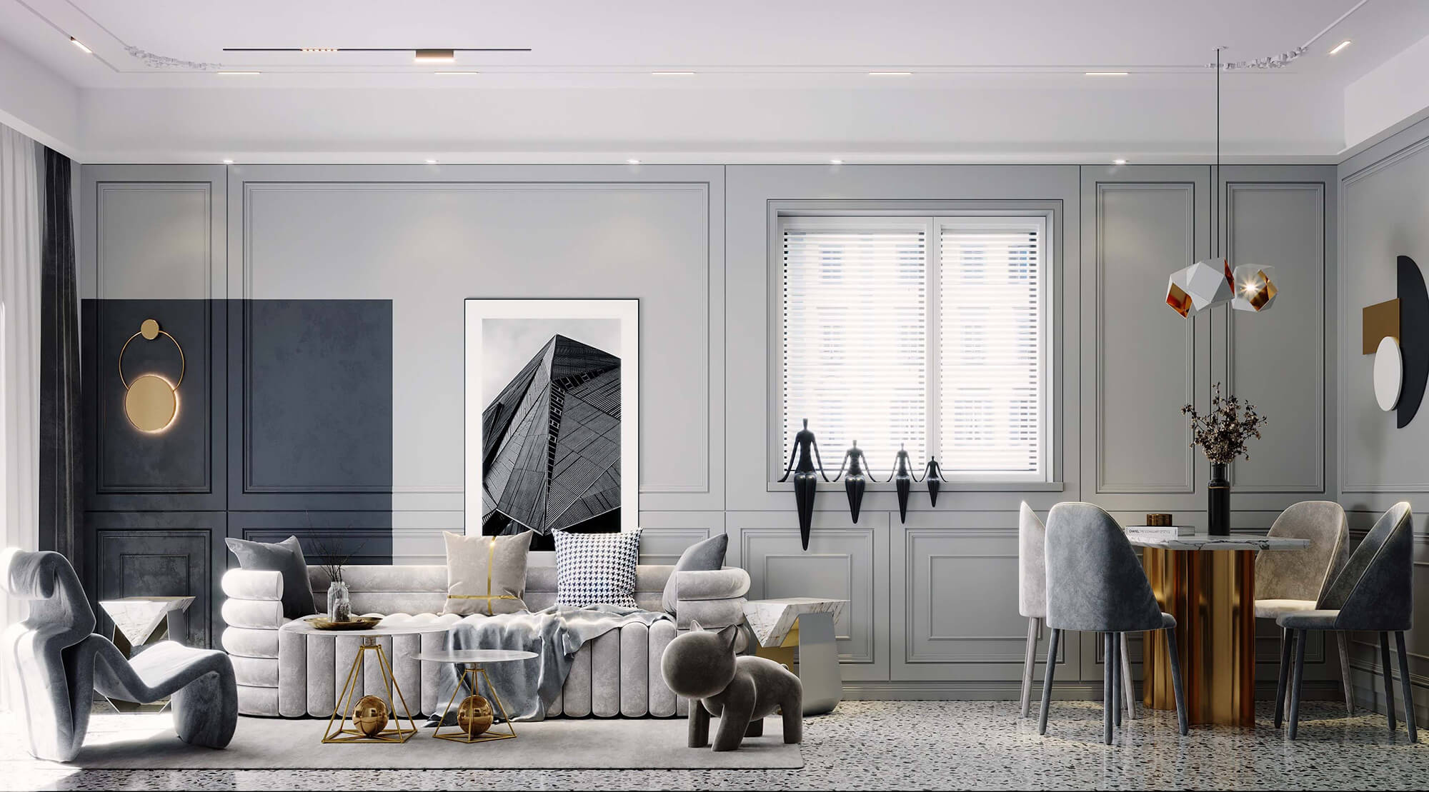 本案為總面積125㎡的現代簡約風格案例。簡約從外,溫暖從心。客廳空間拋棄多余復雜的色彩,以淺灰色為主色調,運用材質光影的變化,注入生活的溫情,打造細膩動人的治愈系情調。