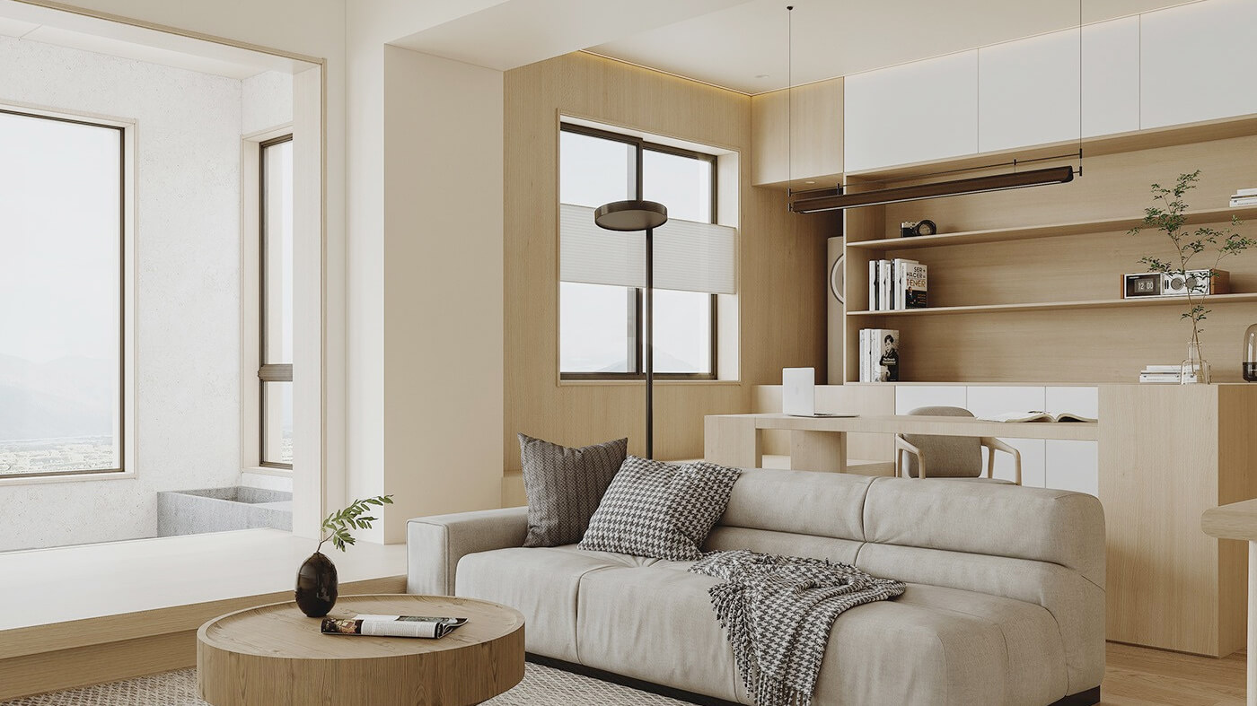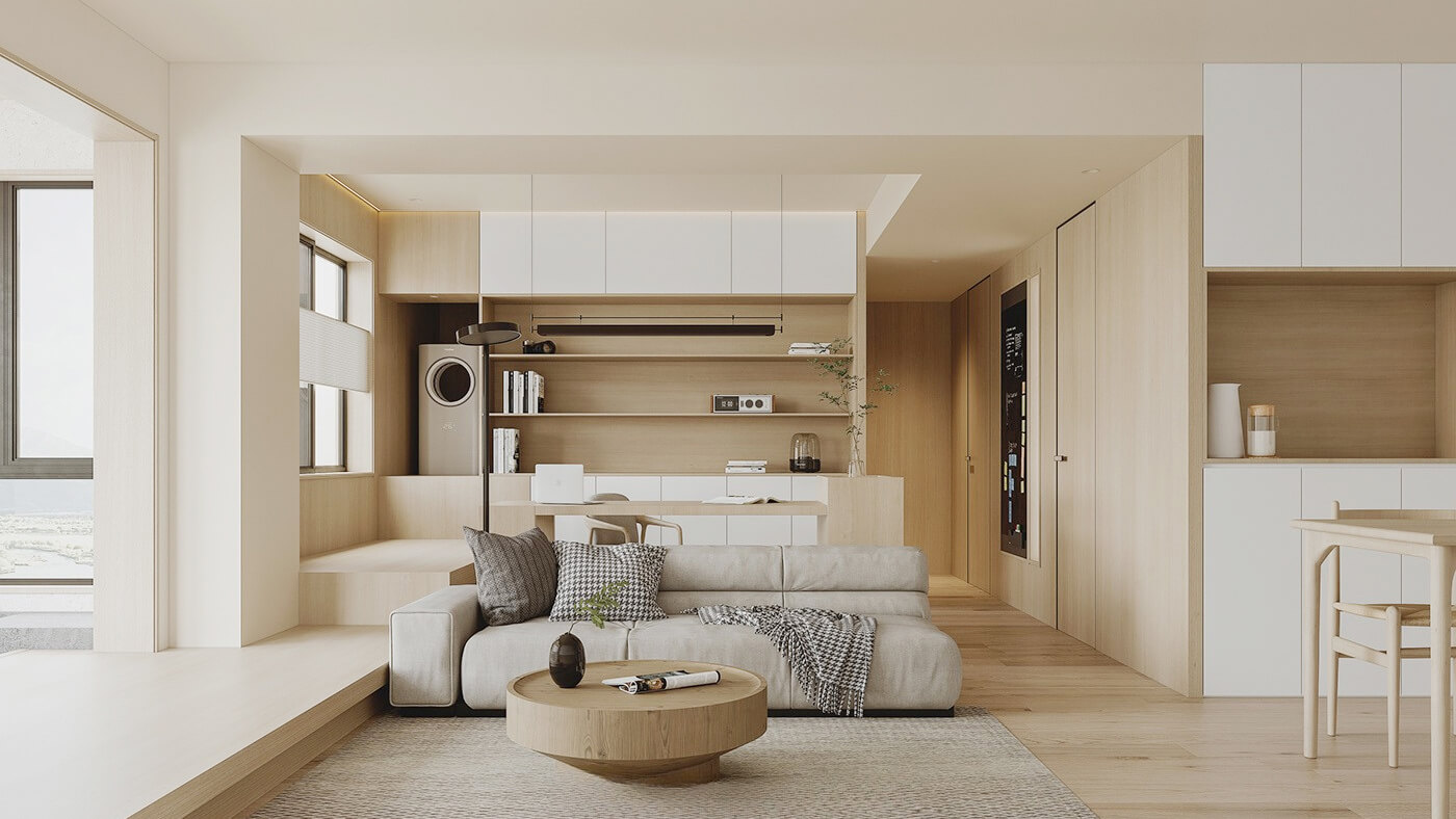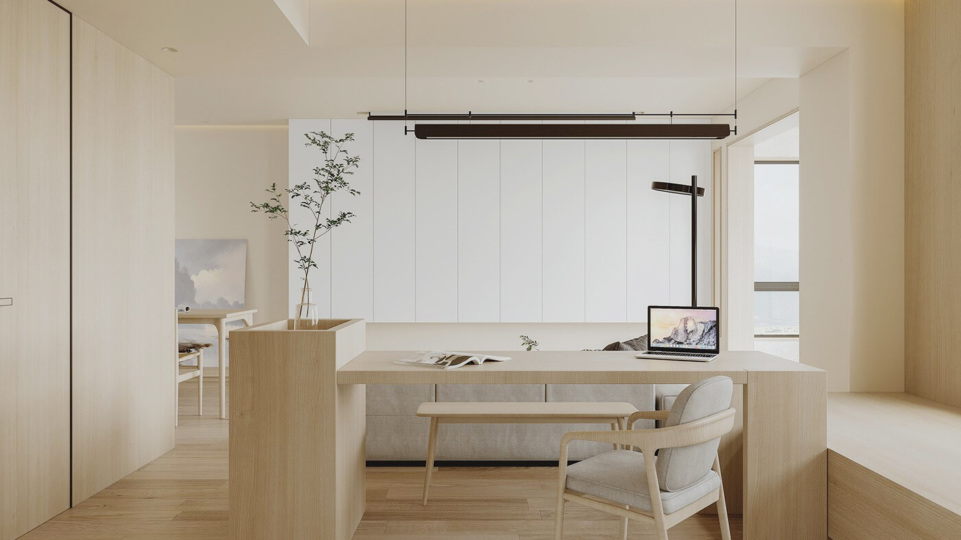 該案例采用木質元素,整體呈現簡約效果,空間上將空間極大化利用的設計。日式家居中多采用沉靜溫和的自然色彩,家具的造型線條簡潔,大氣又自然。