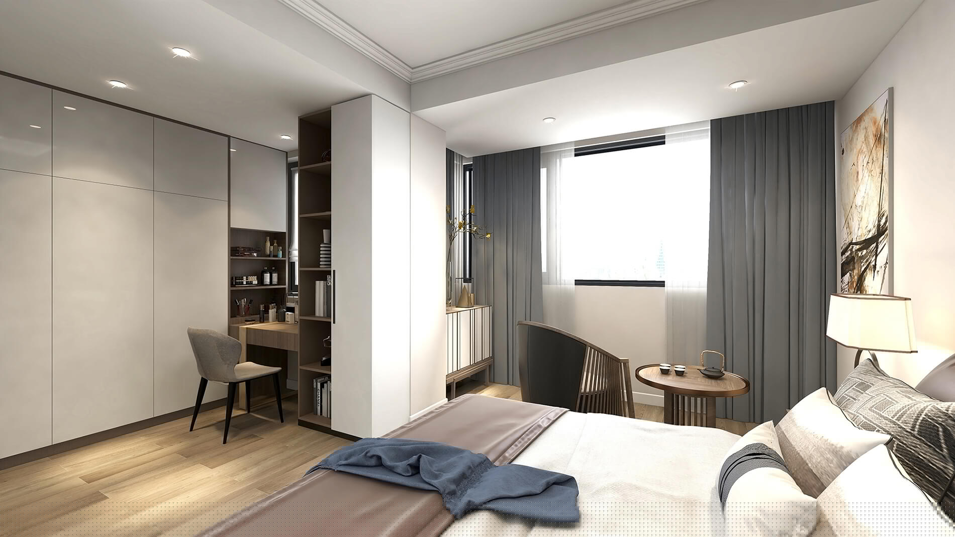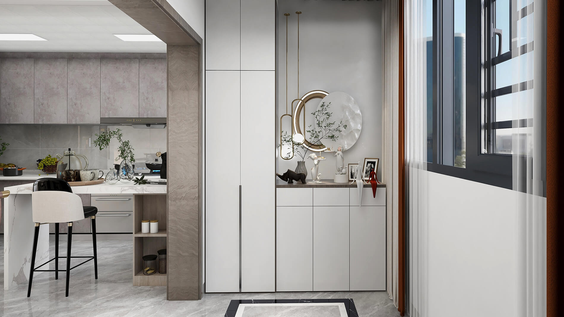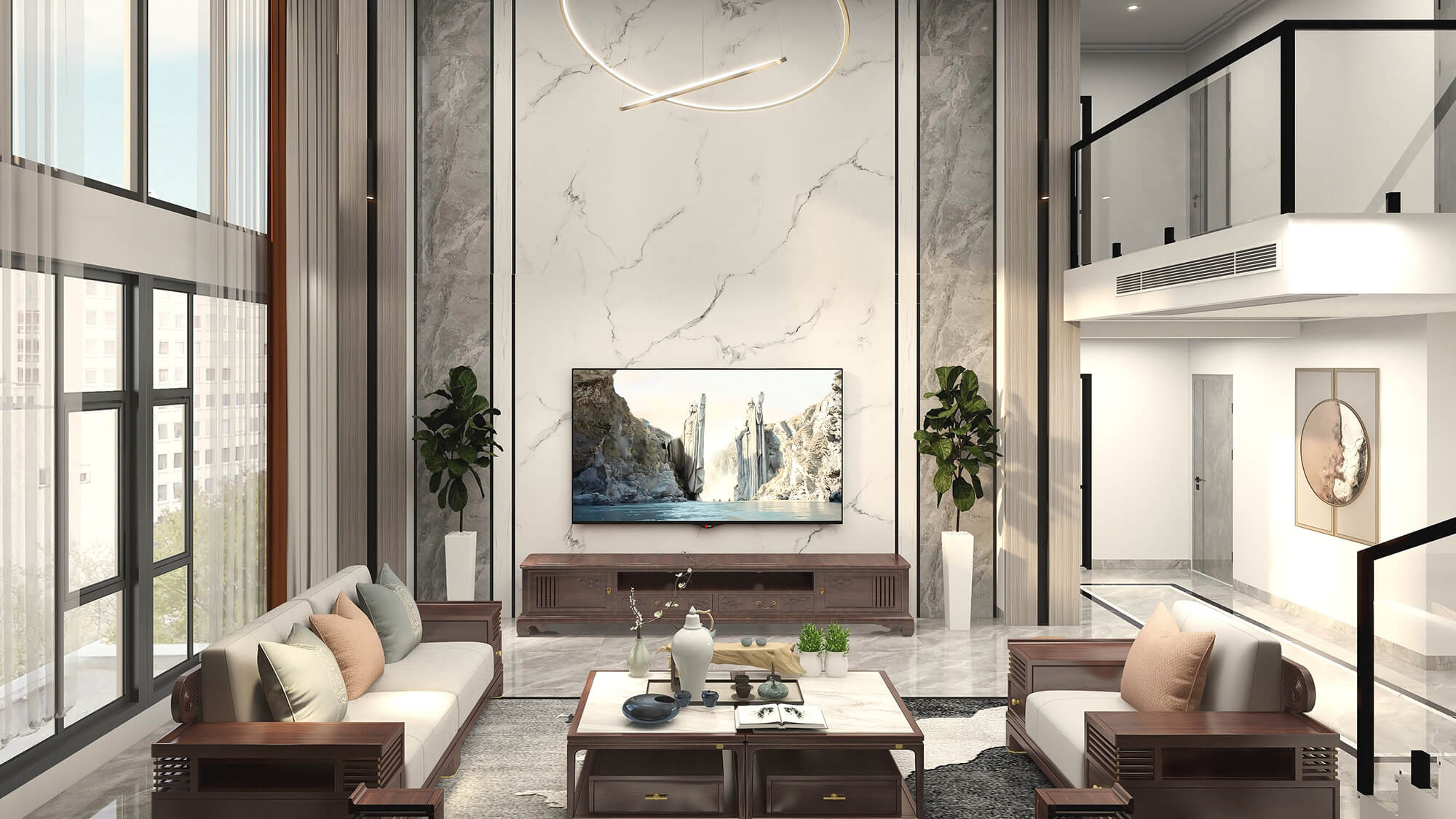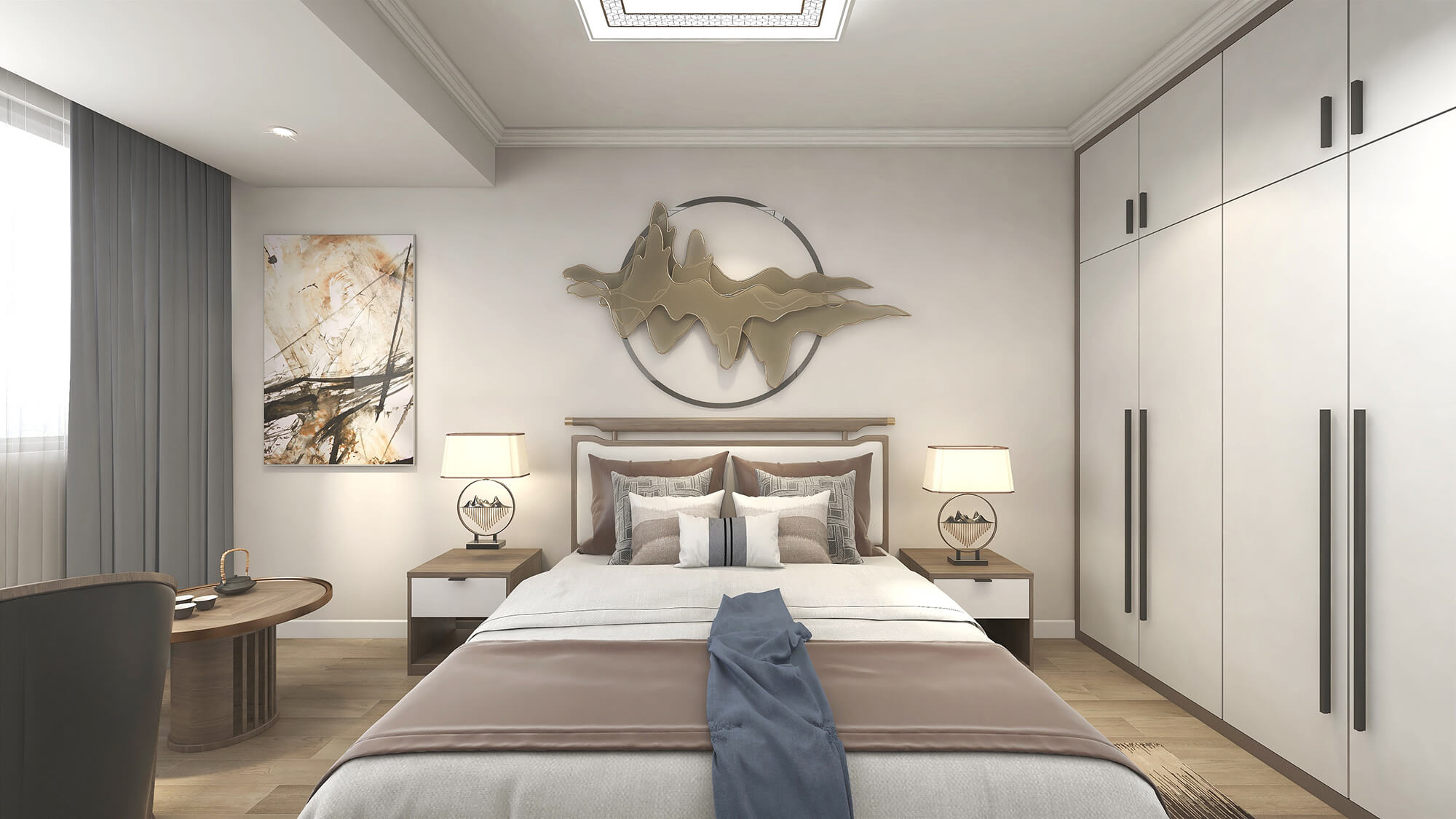 本案為220㎡的新中式風格案例。淡雅的色調,呈現出清亮的質感空間,現代飾品的擺設和新中式家具搭配,勾勒出一個極具格調的精神寧靜地帶。