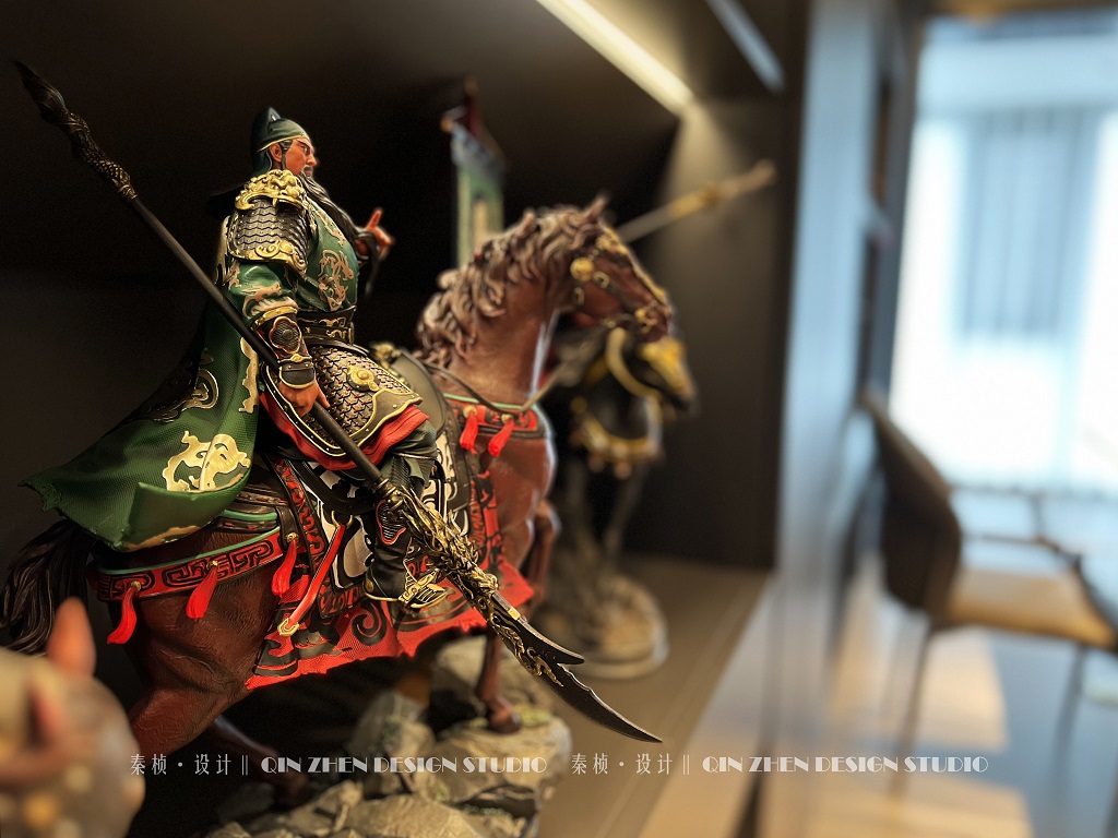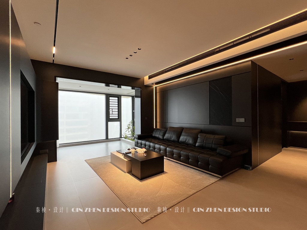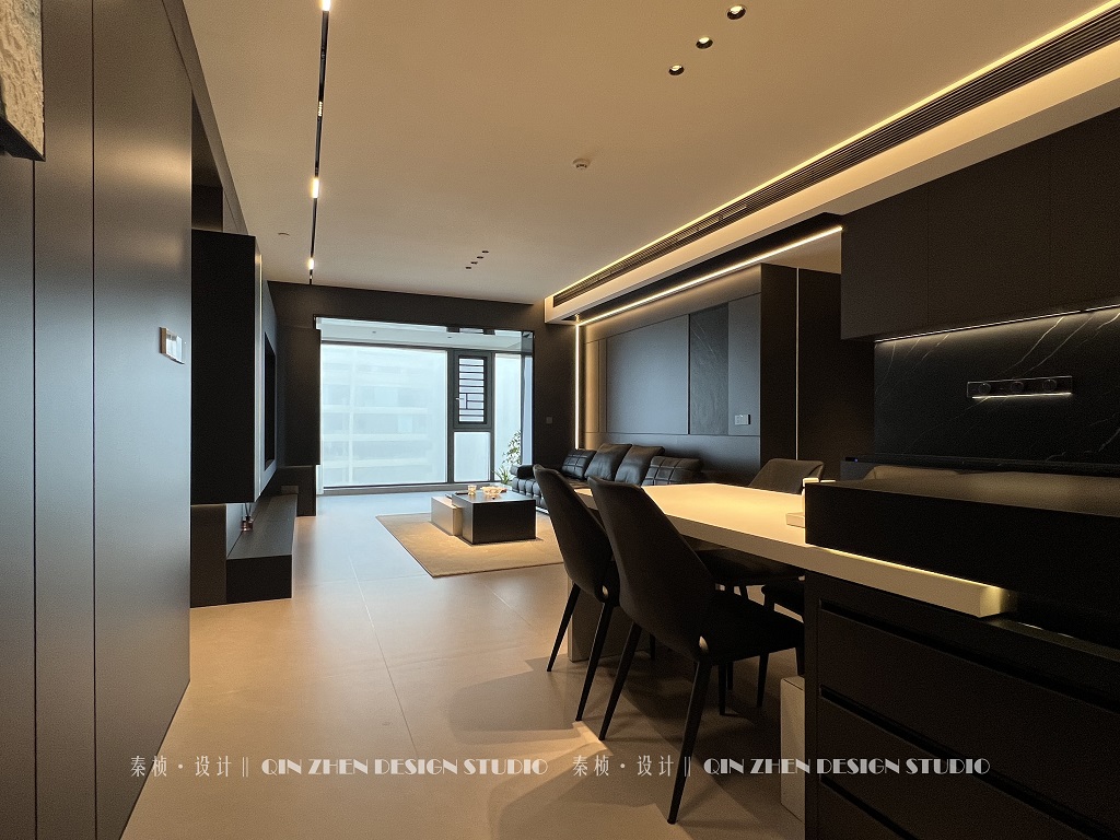 戶型改造: ◆原戶型的5房直接改成2房,入戶封閉廚房拆除; ◆將原有的老人房拆除做成半開放式書房+茶室; ◆把次臥做隱藏門隱秘空間、打通陽臺; ◆原有的封閉式廚房做成開放式廚房; ◆靠近主臥的次臥打通,做成衣帽間;