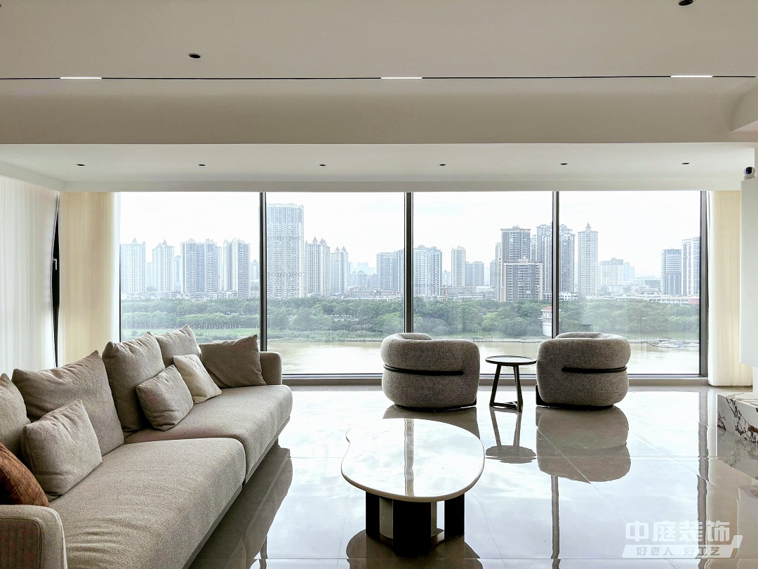 西園潤府非常漂亮的143平現代輕奢風格案例,大橫廳落地窗享受了絕美的江景風光。整個空間隨性、慵懶,外加包裹著現代家居特有的優雅與浪漫~