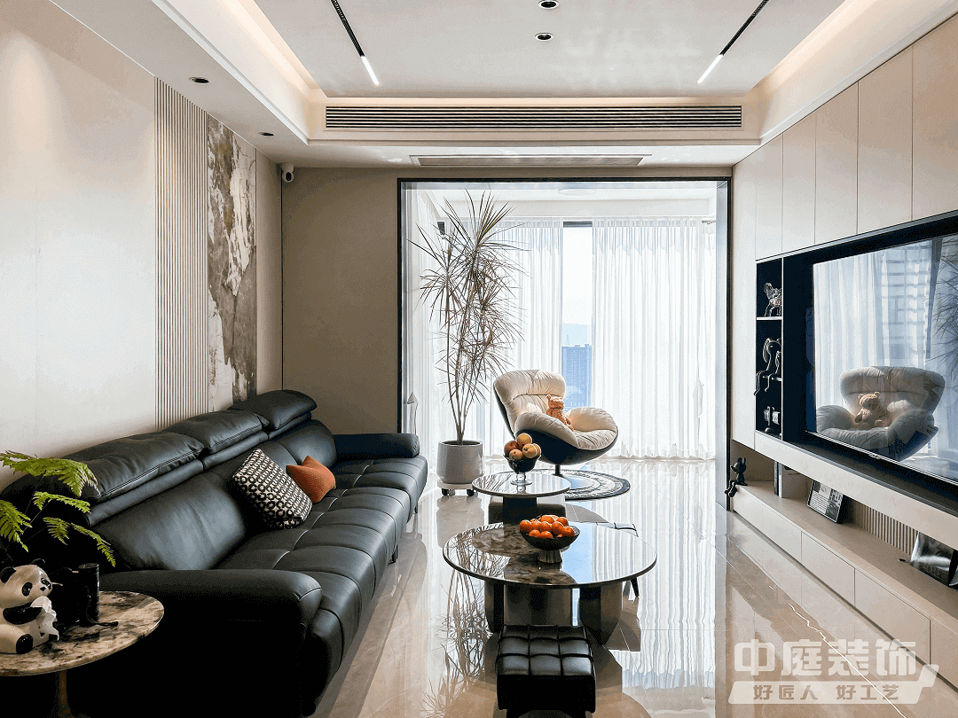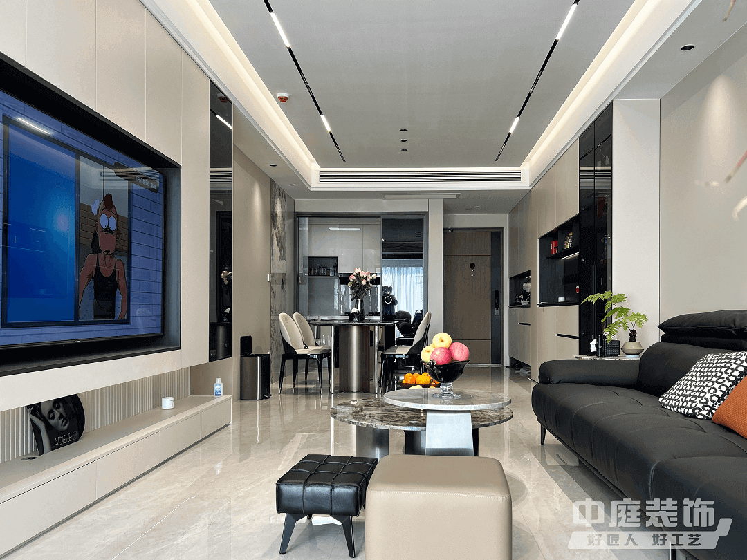 瀏覽量:1114客廳:懸空的電視柜一面內嵌屏幕,一面用來收納,隱藏設備、線路,保證空間的整潔。置入電視柜后,使動線產生不同方向之間的變化,穿行自由的空間格局使生活場景豐富多變。