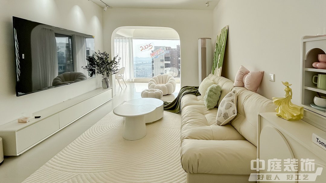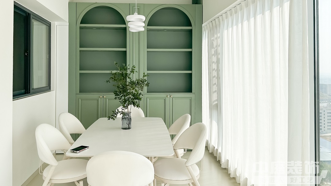 這是一套118㎡的復式住宅,將清新綠與奶油色巧妙融合,營造出一種寧靜而溫馨的氛圍,如夢如幻的浪漫生活由此開始,大面積窗紗將室外光線過濾后傾撒入客廳。