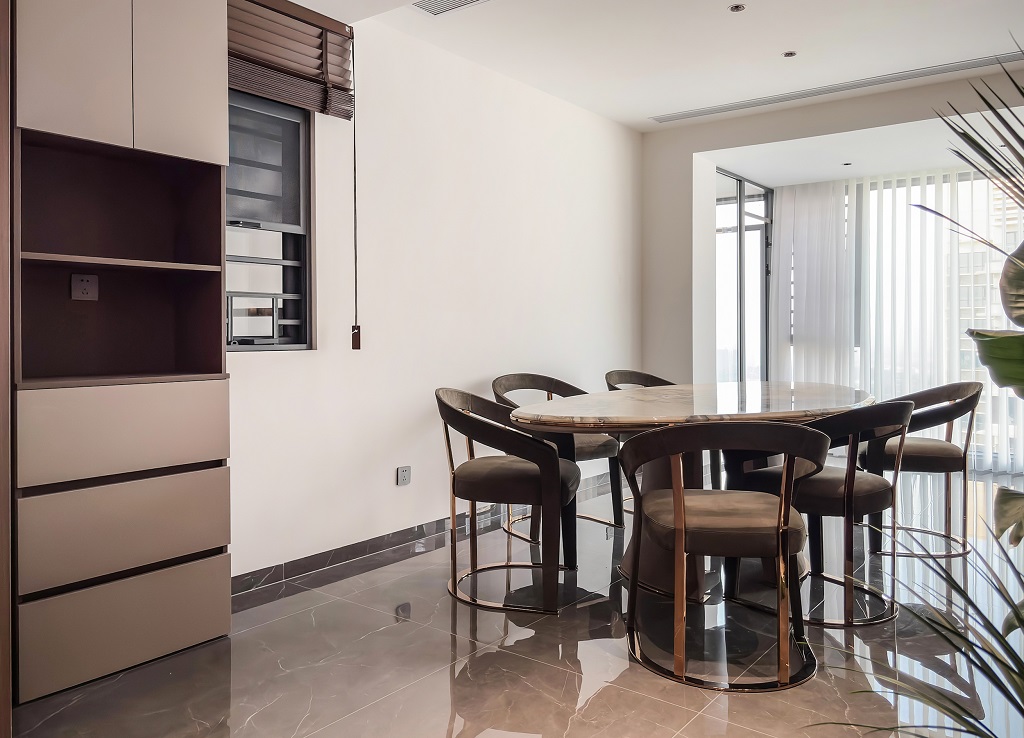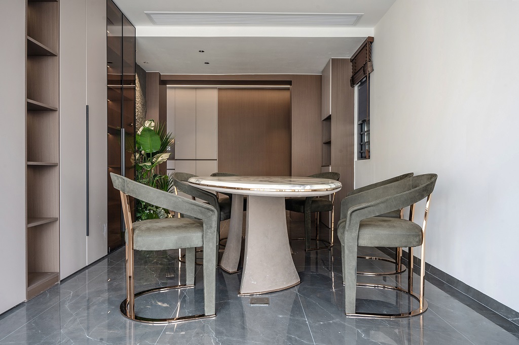 本案以意式輕奢為基調,將自然肌理與奢華材質完美融合,通過極簡線條與精致細節的碰撞,打造出兼具藝術性與功能性的居住空間。規整的硬裝搭配低彩度的軟裝,讓低調沉穩的氣息在家中蔓延開來。