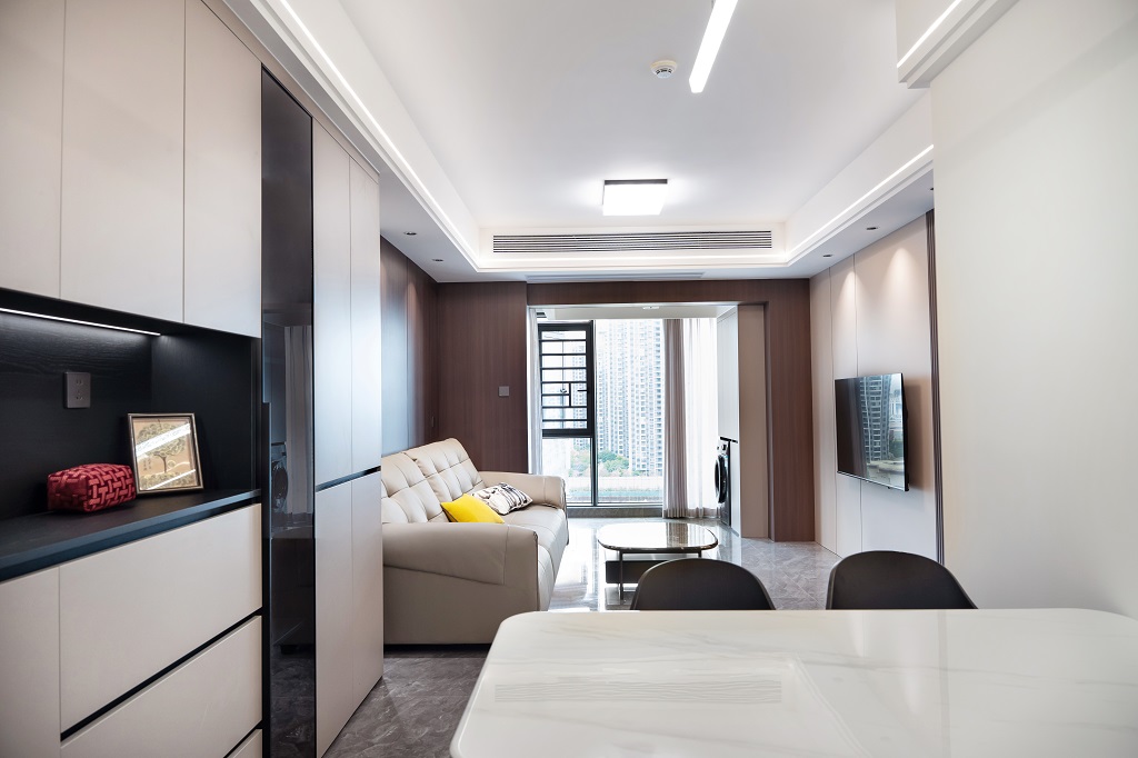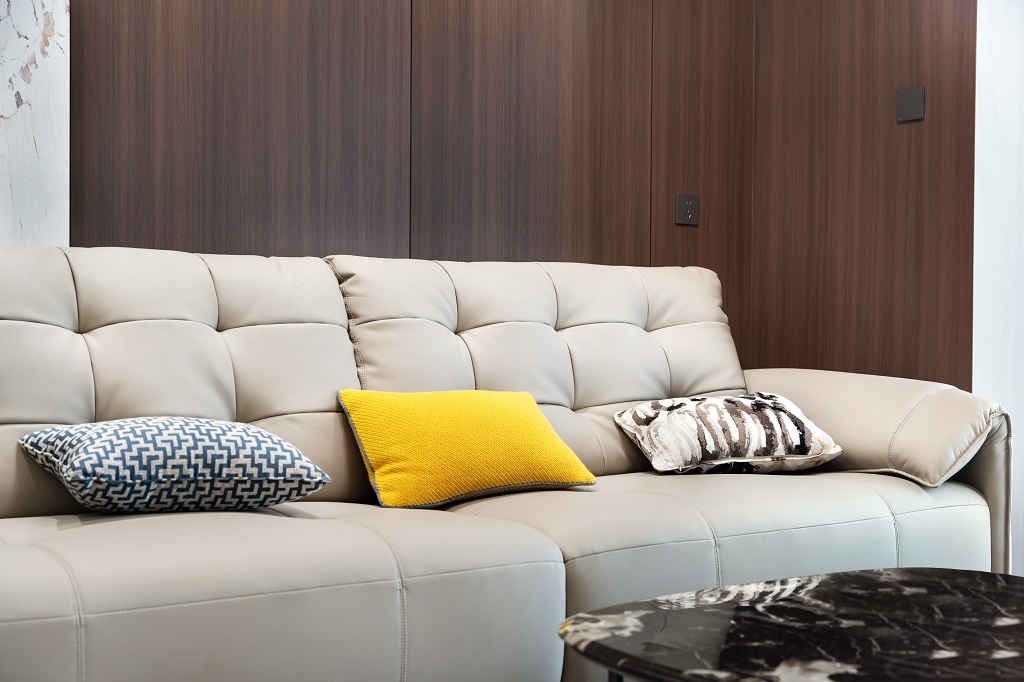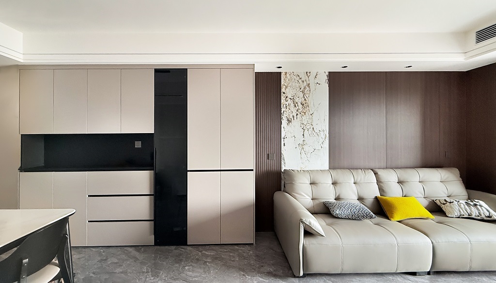 整體是簡約高級的風格,米棕色調溫柔又大氣,朋友來都夸很有質感!皮質沙發癱著超舒服,亮黃色抱枕一下子讓空間活潑起來~ 收納做得很隱蔽,家里永遠整整齊齊。臥室的窗簾一拉,就是專屬的靜謐小天地。在這樣的家里,吃飯、追劇、發呆,每一刻都好愜意~這大概就是把日子過成詩的感覺吧~