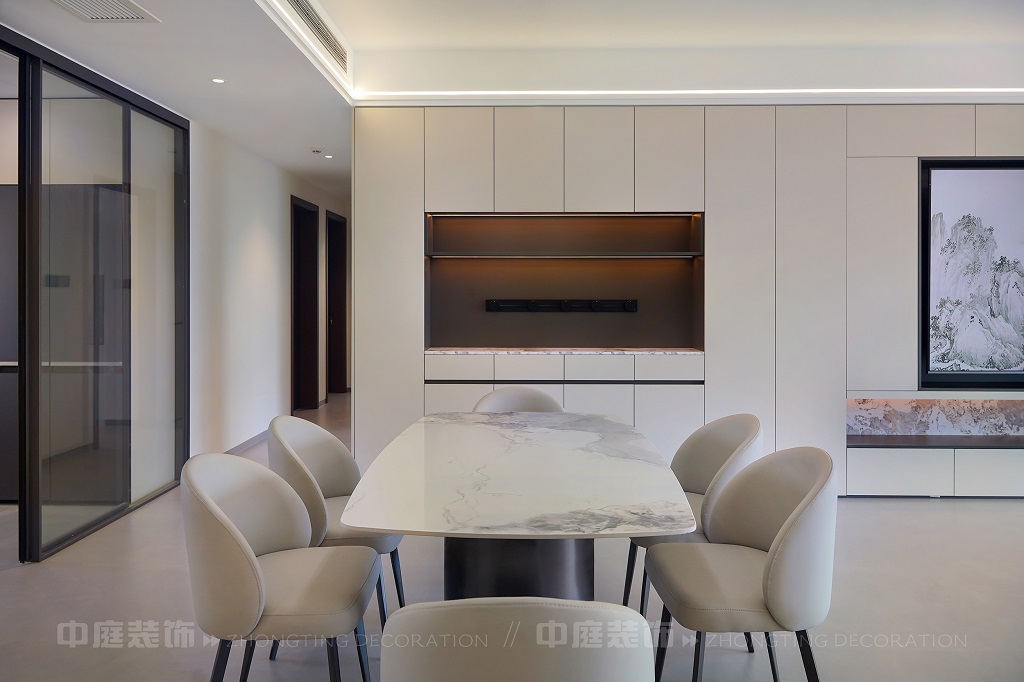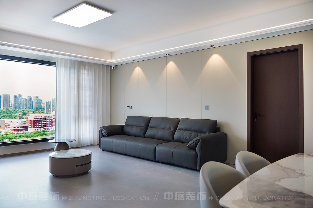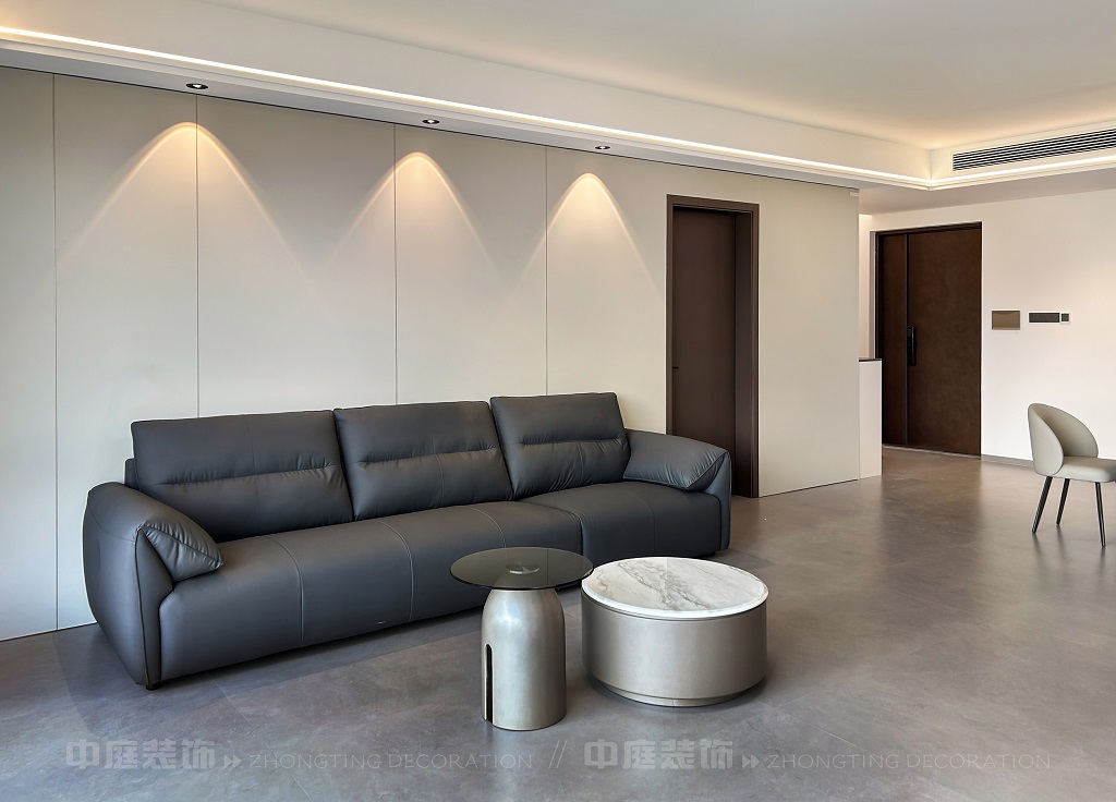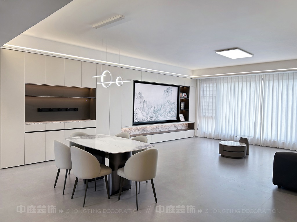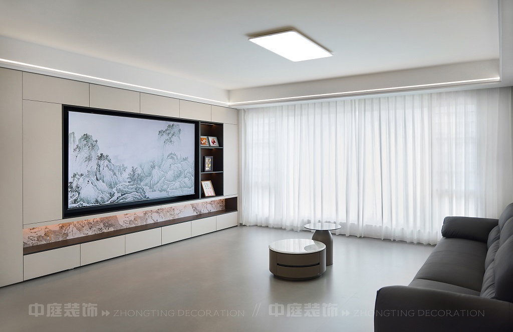 瀏覽量:201客廳電視背景墻的山水畫面,既具現代設計的視覺沖擊力,又蘊含傳統山水意境。材質上選用簡約的板材、大理石與金屬元素,搭配簡潔的家具造型,呈現出低調的奢華感。燈光設計以線性燈和嵌入式燈具為主,通過柔和的光影強化空間層次。同時,在簡約的布局中融入對生活細節的考量,讓整個空間既符合現代都市人的審美需求,又傳遞出含蓄的東方美學意境,實現了功能性與藝術性的平衡,打造出舒適且富有格調的居住環境。
