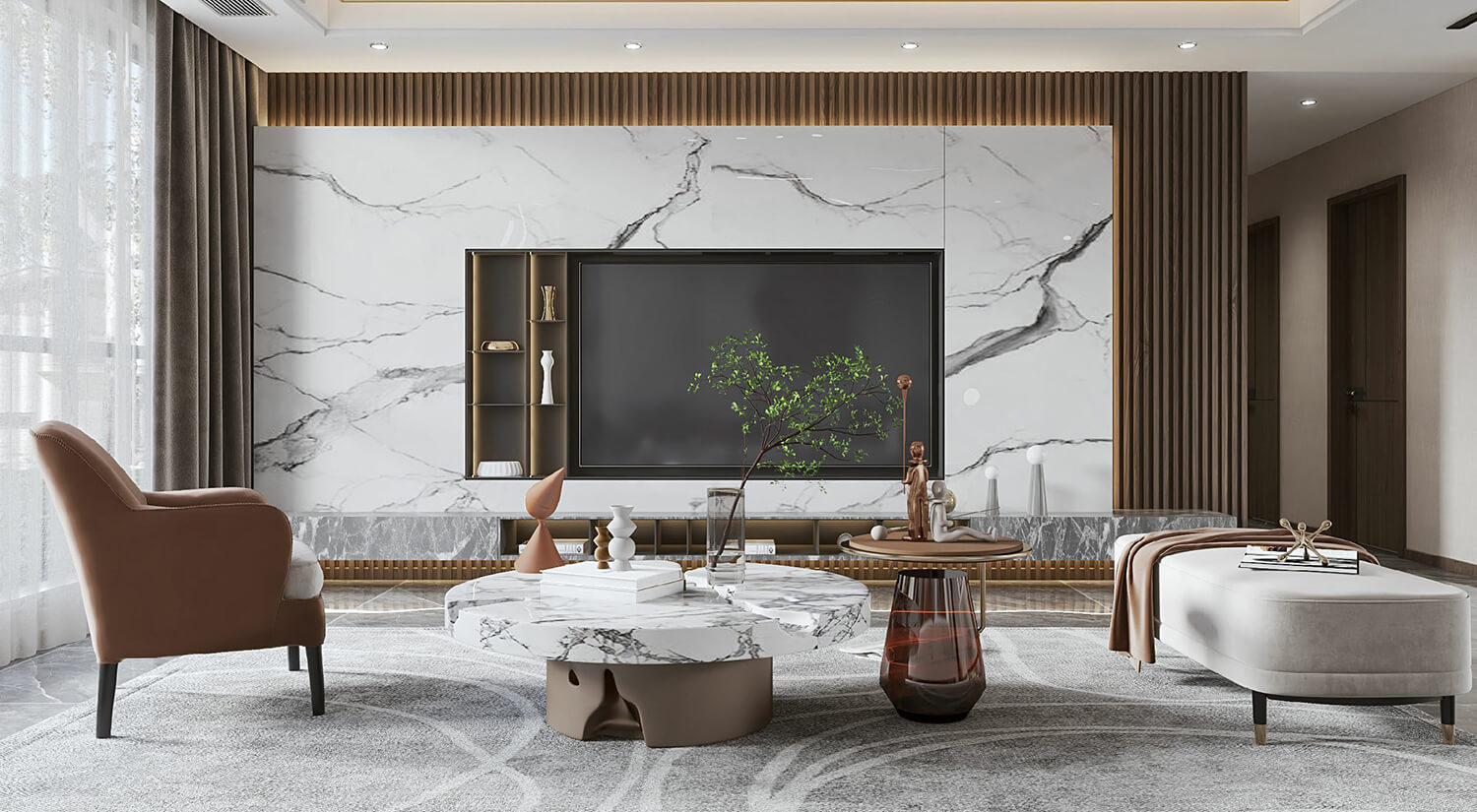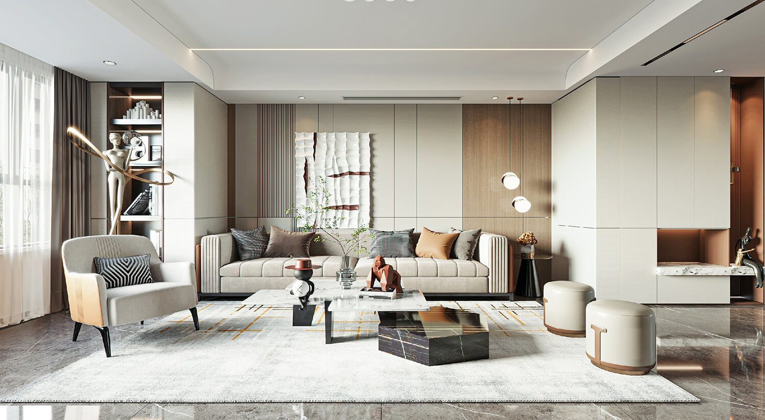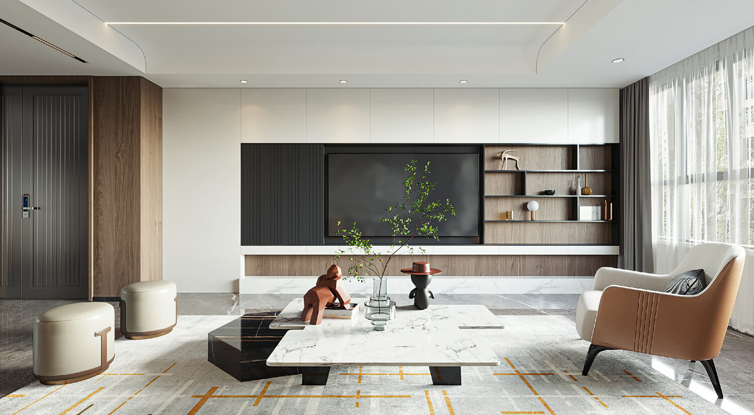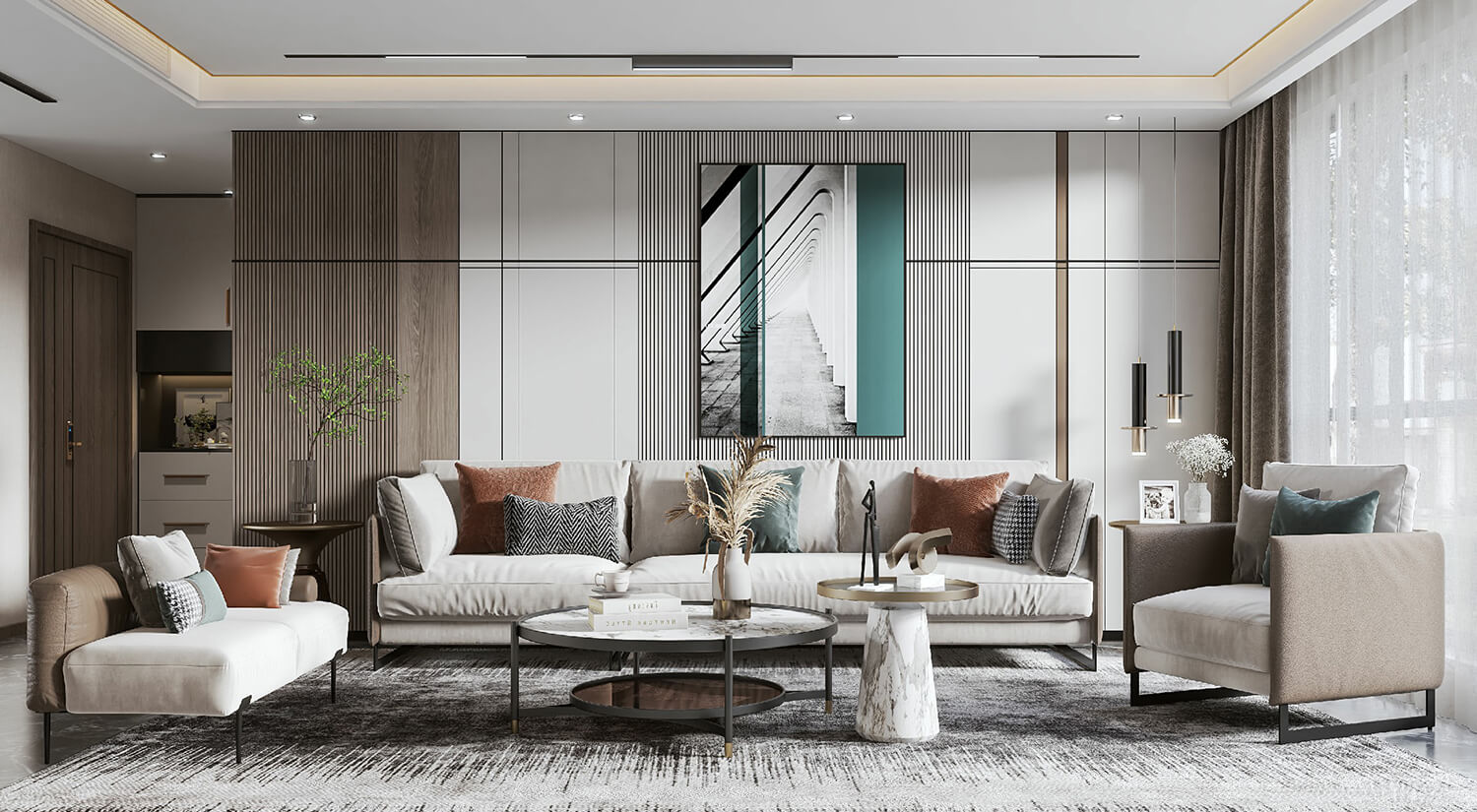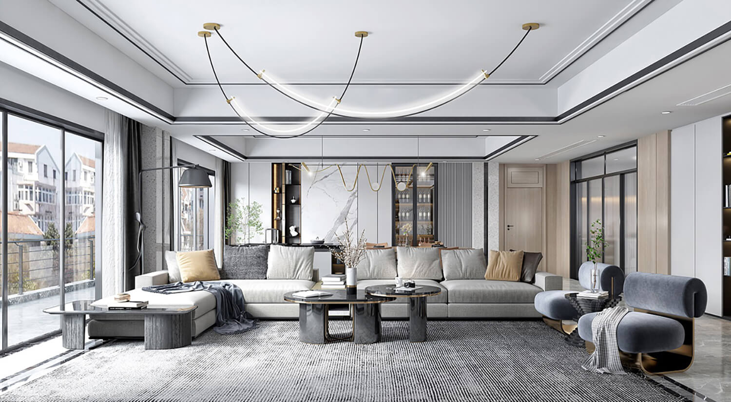 這個客廳都是現代簡約風格,現代簡約風格提倡形式追隨功能,就是講究功能第一,花里胡哨的裝飾物可以拋開不要。該設計的特色是將房屋的原材料、色彩搭配、燈光照明等進行最大化的簡化!