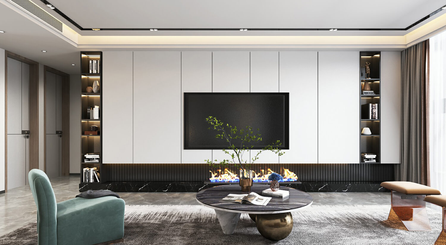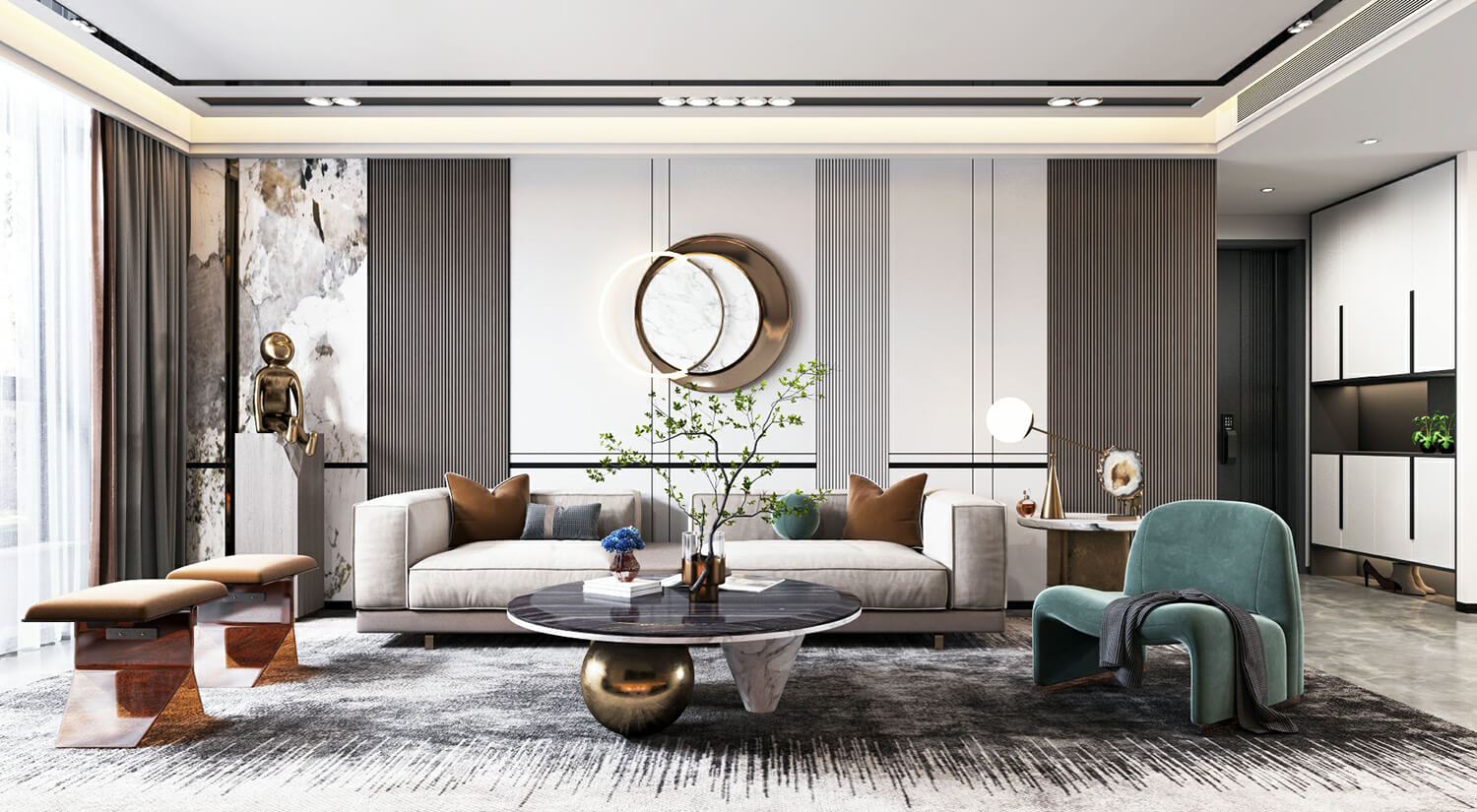 本案例面積125㎡,布局為3房2廳。該空間融合了現代簡約和奢華元素,營造出豪華而不失品味的空間氛圍。
