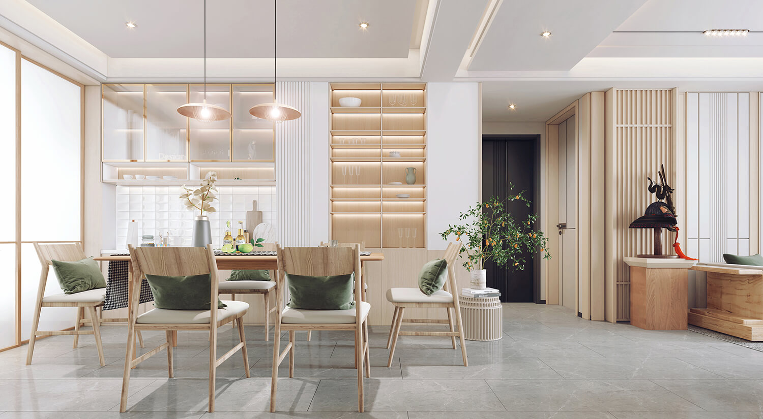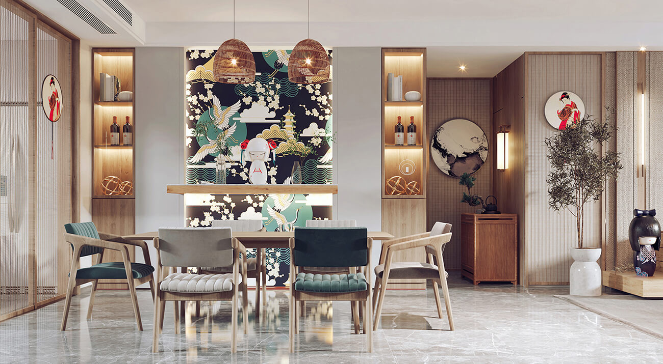 日式室內設計也注重利用空間的高度和深度。天花板常常被設計為極高的,以營造一種開放和自由的氛圍。