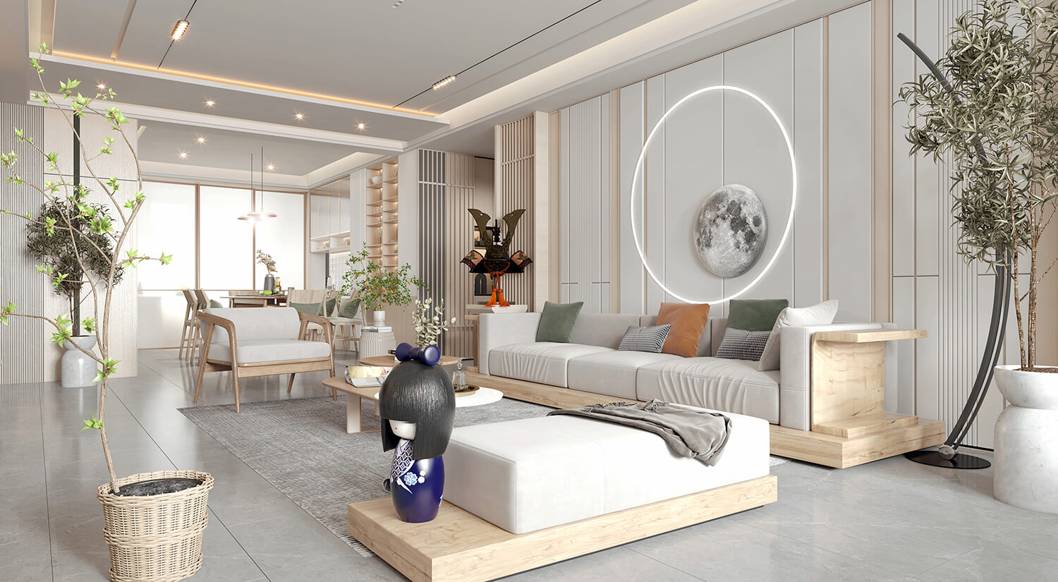 日式風格的色彩通常是簡約的,以自然色調為主。墻面和地板通常采用米色、淺黃色、灰色和白色,這些顏色可以使整個空間看起來更加明亮和寬敞。