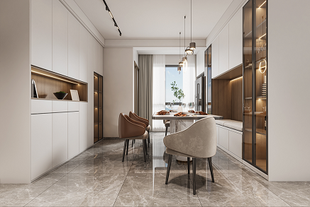 空間大面積描繪溫暖的棕灰色調,將優雅而內斂的視覺觀感散布于每一個細節之中。設計師嘗試以一種接近生活本質的視角觀察點滴日常的豐富性,將生活主場景面向自然景色,創造開闊明亮、安靜舒適的居住氛圍,讓每一位居住其中的人與自然對話,感受自在。